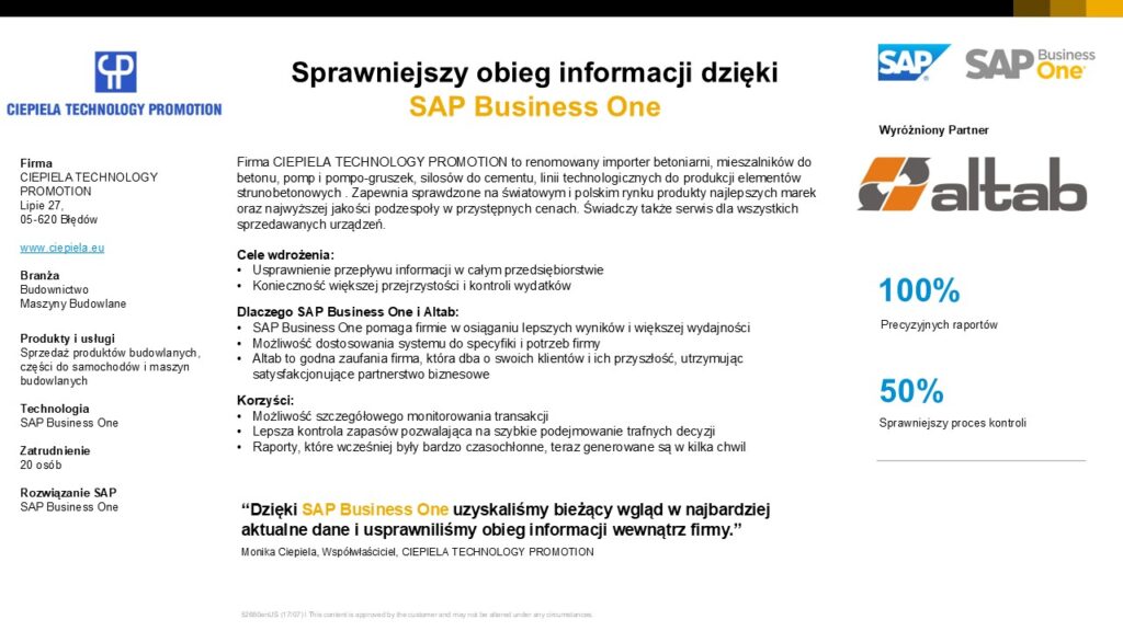 - SAP Business One pomaga firmie w osiąganiu lepszych wyników i większej wydajności