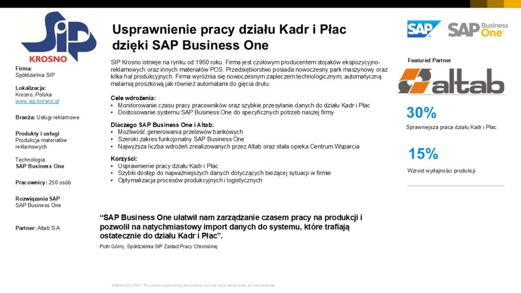 „SAP Business One ułatwił nam zarządzanie czasem pracy na produkcji i pozwolił na zautomatyzowanie procesu zleceń produkcyjnych”.