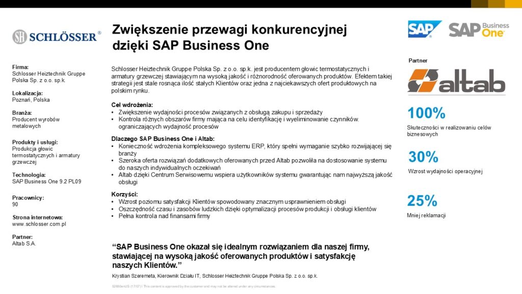 „SAP Business One okazał się idealnym rozwiązaniem dla naszej firmy, stawiającej na wysoką jakość oferowanych produktów i satysfakcję naszych Klientów”.