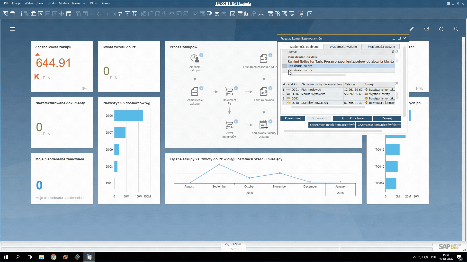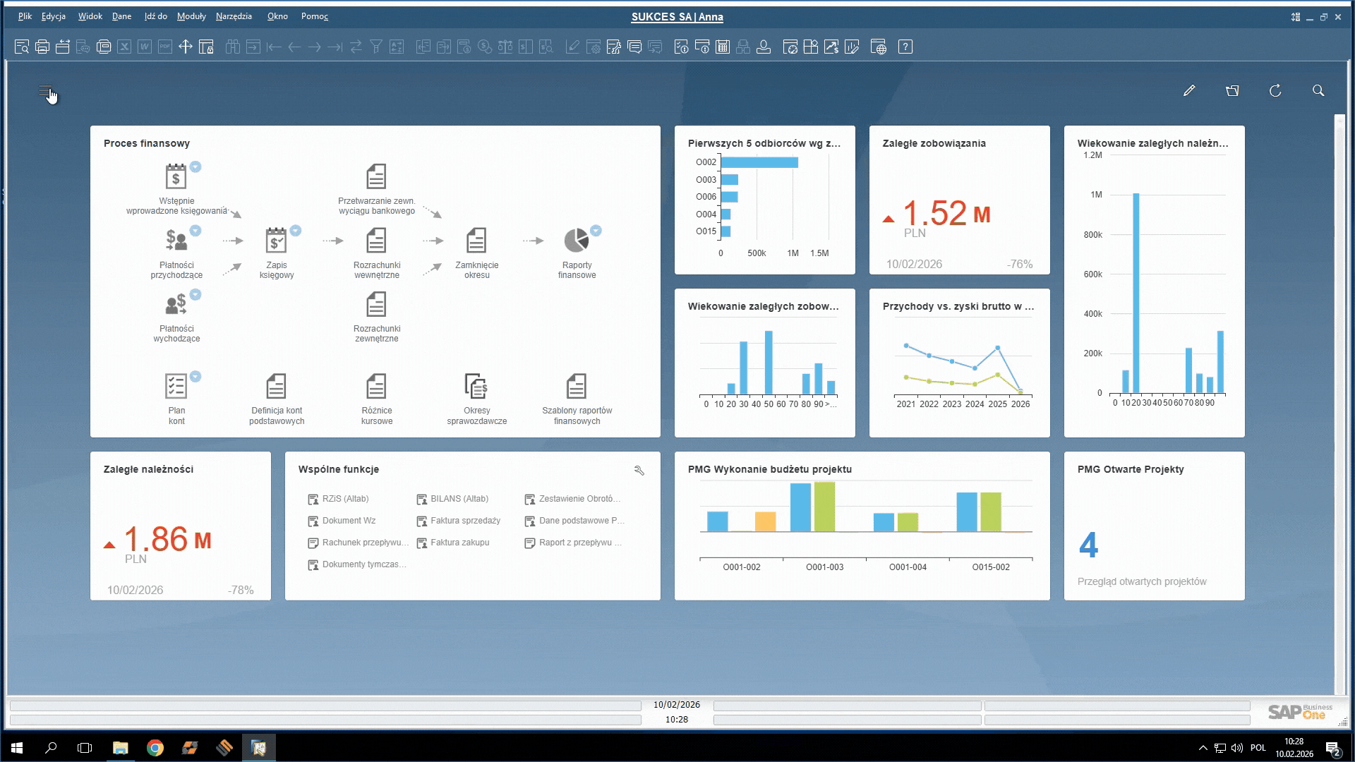 Patrzę na projekty z perspektywy finansowej i dbam o ich rentowność oraz minimalizację ryzyka. W SAP Business One mam bieżący wgląd w koszty rzeczywiste, mogę porównywać planowane koszty z wykonaniem oraz śledzić marżę projektu w trakcie realizacji. Dzięki temu mogę szybko identyfikować odchylenia i podejmować decyzje, które zwiększają efektywność finansową projektów.