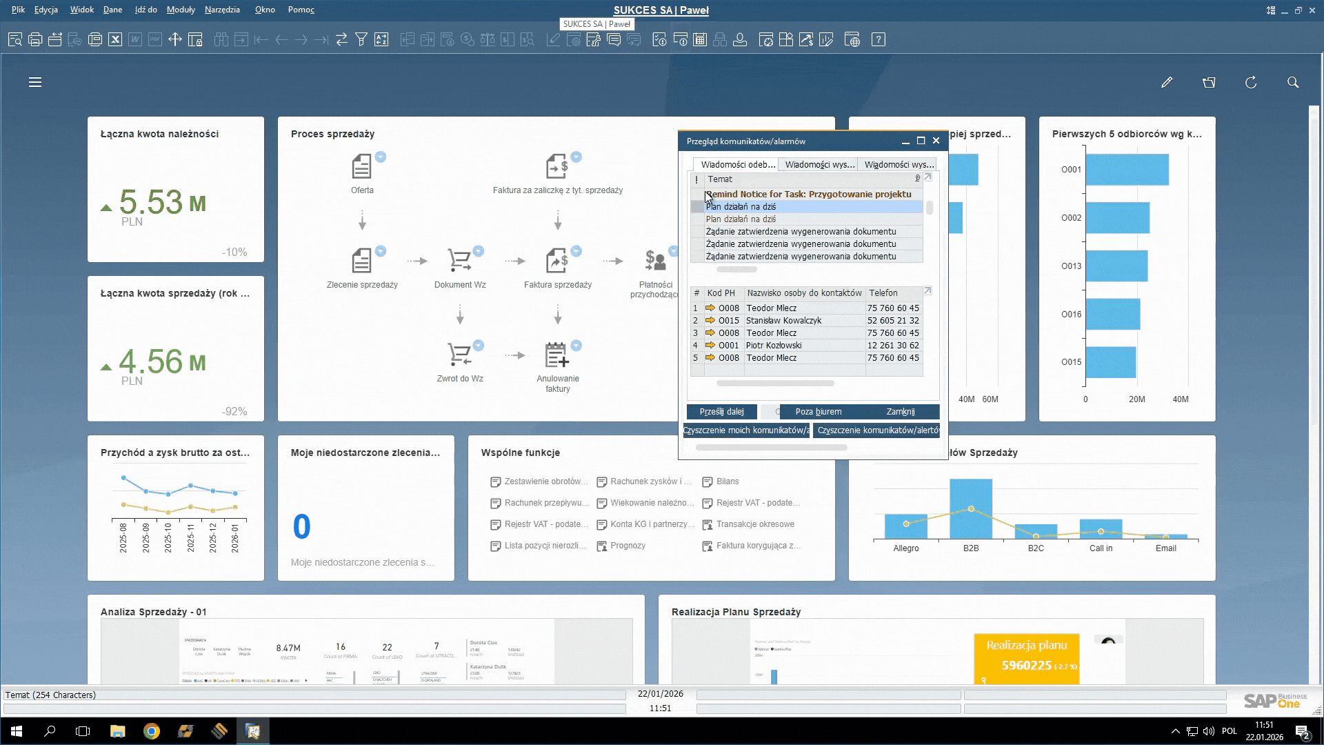 W systemie SAP Business One wszystkie dane – sprzedażowe, projektowe, operacyjne i finansowe – są ze sobą powiązane. Dzięki temu każdy uczestnik projektu korzysta z tych samych, aktualnych informacji, a procesy płynnie przechodzą od jednego etapu do kolejnego.